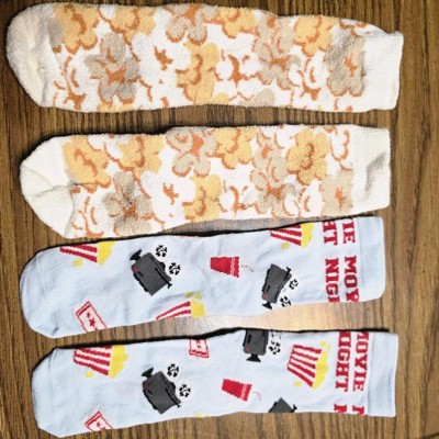 Women's Popcorn Christmas 2pk Cozy Crew Socks - Ivory/Yellow/Blue 4-10