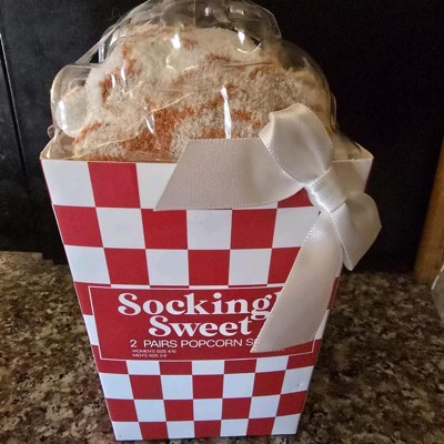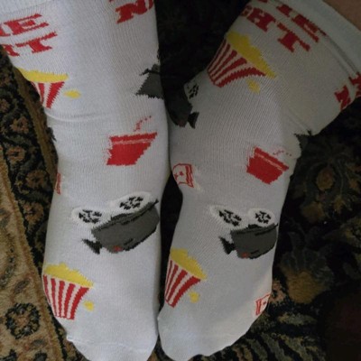 [This review was collected as part of a promotion.] The packaging for the socks is so adorable and will make a great gift for the coming holidays. Both socks look cute and the print is pretty good on it too. It fits up to a 10 and the popcorn one is fuzzy and the movie theater one is a normal sock fabric. this will be a fun nice little gift maybe for a gift exchange in the office or for your friends and family. Especially if you know somebody is like a big movie fan.