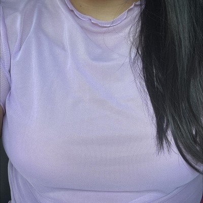 Mesh blouse from Wild Fable™ with an unlined construction. Features a ruff-collar neckline and cap sleeves. Tailored in a fitted silhouette with a cropped length. Made of an extra-lightweight fabric blend of recycled polyester and spandex for comfortable, flexible wear that moves and stretches with you. Pullover style completes the look.