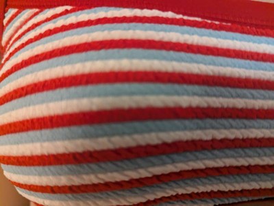 [This review was collected as part of a promotion.] The Wild Fable bikini Medium top was a little tight on my chest. I love that it has adjustable straps for comfort and the removable pads are a big plus, some people love them, others aren’t a fan, but I like them. The material is very stretchy and love the red, white, and turquoise blue striped pattern. It is a perfect top for all summer. It’s not screaming 4th of July, but would be a great asset to your wardrobe. I just need to grab a larger size . I received an incentive to write this review.