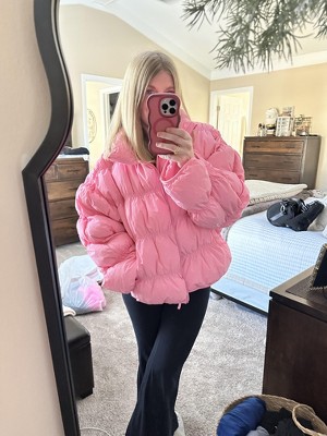 this puffer is perfection. I'm 5'4 and 130lbs, and purchased an XL for an oversized look, and to fit hoodies underneath. I'm buying another color.... or two. ✨✨✨