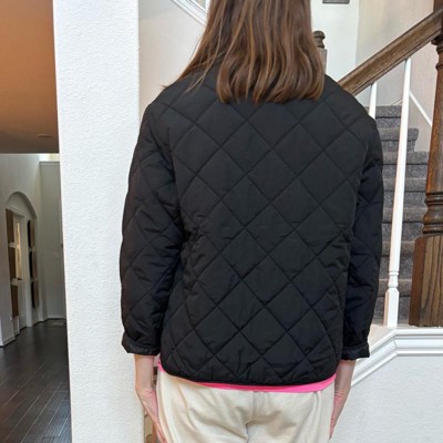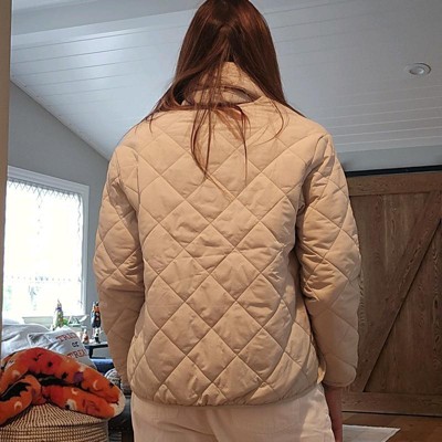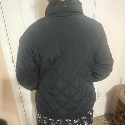 Get your wardrobe ready for the colder months with this Quilted Scarf Jacket from A New Day™. Made of nylon with 100% recycled polyester lining and filling, this long-sleeve jacket helps keep you warm and cozy. The scarf provides extra coverage, while the front snap closure makes it easy to wear and helps keep out cold wind. Plus, it also has two side pockets that provide space for on-the-go essentials.