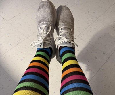 A: Hello rayne - Thank you for your interest on - Women's Rainbow Striped Knee High Socks. The Socks do not glow under black light, because they appear to use standard printed yarns without any UV‑reactive or fluorescent treatment. Hope this information helps. Happy shopping! - Rose