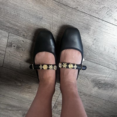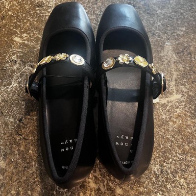 Take your casual looks up a notch with these Rebecca Embellished Strap Mary Jane Flats from A New Day™. These medium-width Mary Jane flats feature an embellished strap and closed D-toe for chic style. The memory foam insoles allow for comfortable wear, and the ankle strap with an adjustable buckle closure provides a stay-put fit.