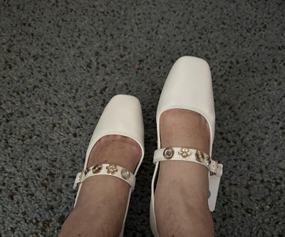 Target to my rescue. I need a flat, pretty, comfortable shoe to wear to a wedding with my long lace dress. And I needed an ivory colored shoe. These shoes are perfect and check off all my boxes. I wear a size 12 which is not easy to come by!