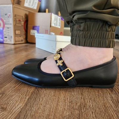 Take your casual looks up a notch with these Rebecca Embellished Strap Mary Jane Flats from A New Day™. These medium-width Mary Jane flats feature an embellished strap and closed D-toe for chic style. The memory foam insoles allow for comfortable wear, and the ankle strap with an adjustable buckle closure provides a stay-put fit.