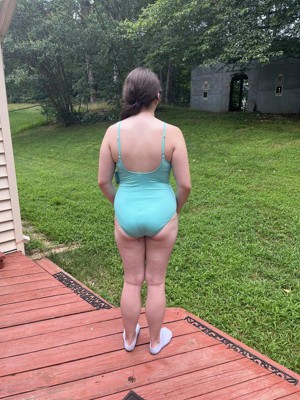 this a great swimsuit for my tween who has outgrew girls sizes but does not want to wear an itt bitty bikini. it is a great fit swimsuit and it is very comfortable. it is the cutest turqoise color great for any taste. pictures taken over clothing for modesty since it is a swimsuit .