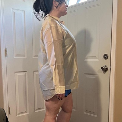 [This review was collected as part of a promotion.] The Women’s A New Day Relaxed Long Sleeve button down shirt was definitely not my favorite. I am 150 pounds, and am 5’5” and normally wear a medium in blouses and shirts. I ordered the medium and could have sized down one or two sizes easily. Also, it is completely see through. It was not at all what I was expecting and at the price point, I will definitely be returning it. I received an incentive to write this review.
