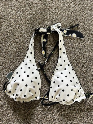 Very cute bikini top! Love the black with daisies and it’s reversible! White with black polka dots. My boyfriend loved it. Runs a bit small