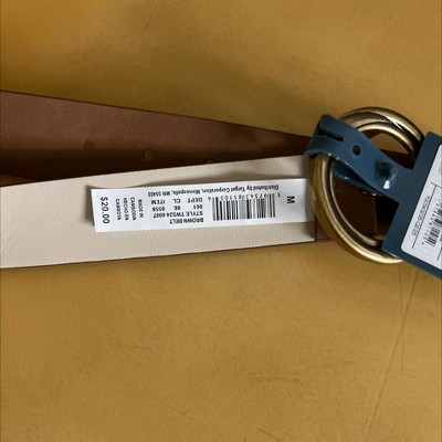 Reversible Wide Suede Round Center Buckle Belt from Universal Thread™. Designed with a gold-tone round buckle and a wide width profile, the reversible suede belt is tan brown on one side and off-white on the other to give you two ways to wear. The adjustable strap with multiple holes give a secure fit to all your outfits, you can pair it with a range of ensembles to dress up your style.