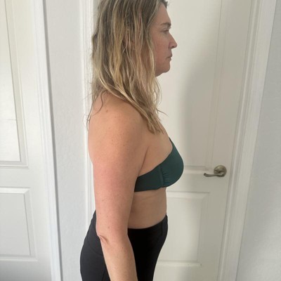 I love this top. It is a simple basic swim top but super flattering. It is true to size and comes with straps incase you prefer adding them. I have 3 little kids I am constantly picking up or bending over for, and I never worry about losing my top in this. It feels secure without being uncomfortably tight or squishing your girls. I love the little ribbed detailing. I want this suit in every color!