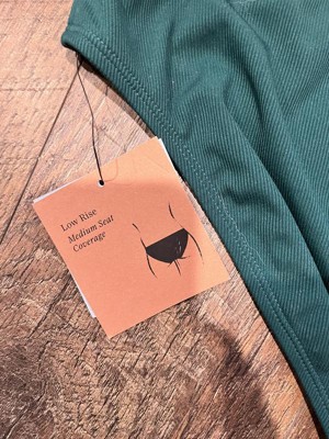 These Women's Ribbed Low-Rise Medium Coverage Hipster Bikini Bottoms by Shade & Shore will have you feeling confident and chic. The deep green color is beautiful and can be complimented with several other colors. I love the ribbed texture and the low rise style. The cut is flattering on my body while providing enough coverage. The material is not just soft and comfortable but also breathable which is a must. I would recommend purchasing.