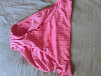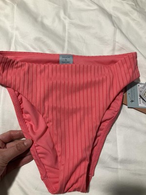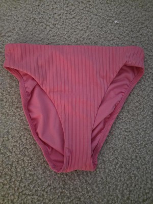 These Women's Ribbed Mid-Rise Medium Coverage Bikini Bottom by Shade & Shore are the perfect color pink. These bottoms are easy to match with neutral and other bright colors. The ribbed fabric gives these bottoms a stylish appearance. They fits true to size and are made of a high quality durable fabric that’s made to last. The medium coverage gives me confidence with my insecurities areas. I would recommend these bikini bottoms because they fit incredibly while giving myself a confidence boost.