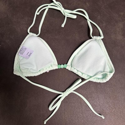 [This review was collected as part of a promotion.] Go this women’s bikini top from Wild fable.The color I got is mint green and size is medium.It fits me perfect as I wear bra size 36-38. Its triangle bikini top with center front beads in mint color.The fabric is soft with ribbed texture in solid shade.The fabric is made with spandex and polyster and provides flexible comfort in and out of water.It have removable cups for coverage if needed.It have behind the neck tie and also back string tie.This bikini top is stylish and cute, good to wear at beaches or pools