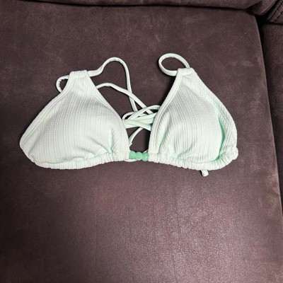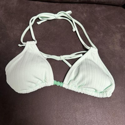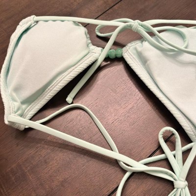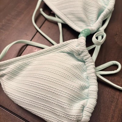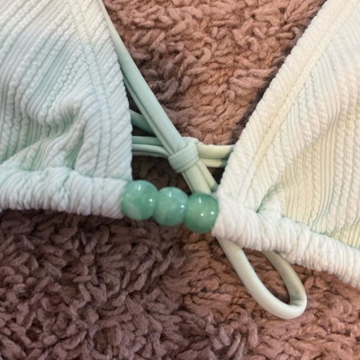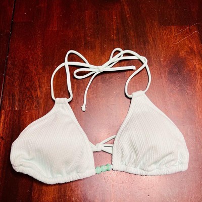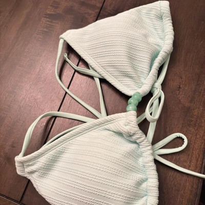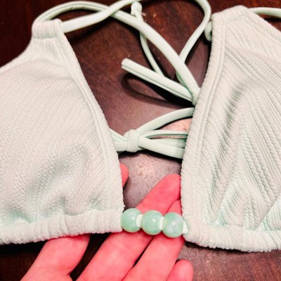 Women's Ribbed Texture Double Strap Medium Coverage with Center Beads Triangle Bikini Top - Wild Fable™