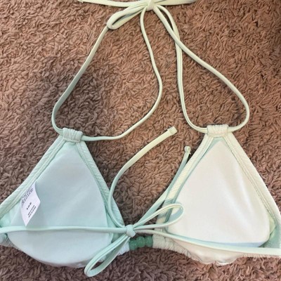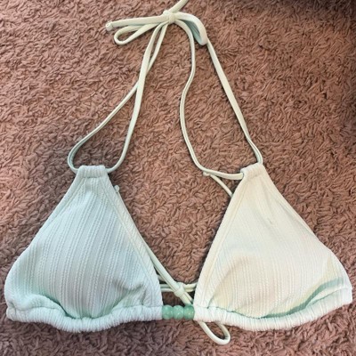[This review was collected as part of a promotion.] This is the wild fable, ribbed textured, double strap, Center beads, bikini top in size small, color is mint. I am 5 foot four tall and about 135 pounds. I typically wear a size small and this top fits true to size. I really like the removable cups and the adjustable straps. The beaded center as a fun element along with the textured material. I do recommend the bikini top and pair it with whatever style bottoms that fit best for you! I received an incentive to write this review.