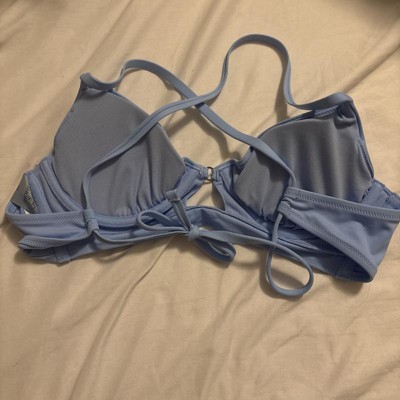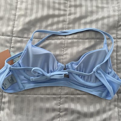 [This review was collected as part of a promotion.] I really love the soft baby blue color of the bikini top. It is made like a bra has a full Under wire cups, it appears that the cup pads are sewn in therefore they would not need to be removed and re-inserted between washes, which is very nice. The back is adjustable. I typically wear a size Large tops and I ordered this bikini top in a size 32d. I could’ve probably sized up a little bit to maybe a 34 or 36, but I really love this color and style I received an incentive to write this review.