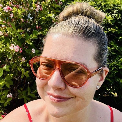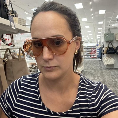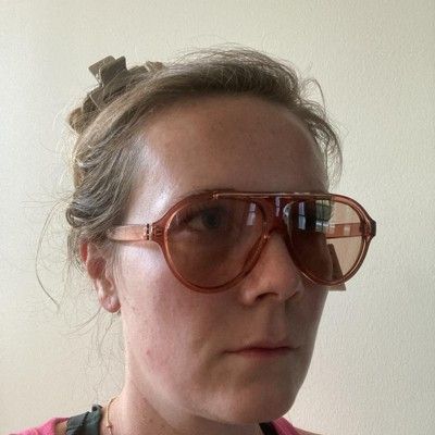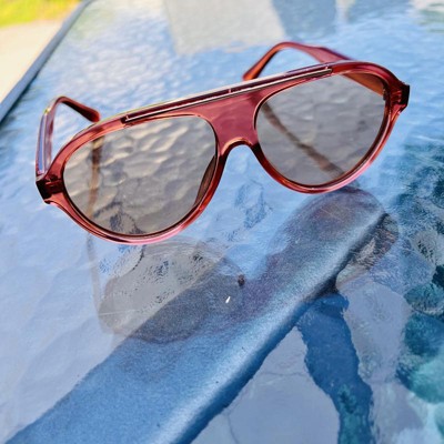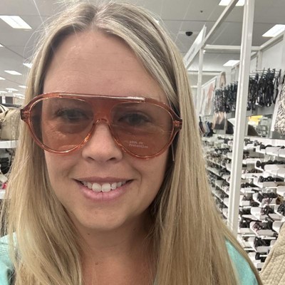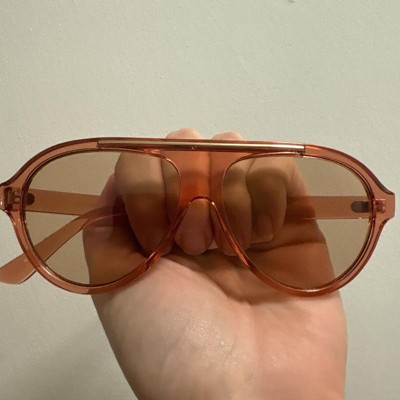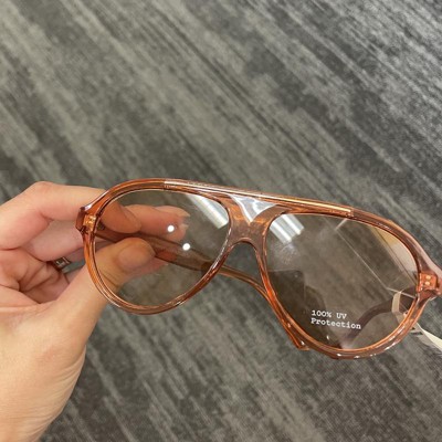 Stay high in style on sunny days with the Round Flattop Plastic Aviator Sunglasses from A New Day™. These round aviator sunglasses are designed with a flat top for a classy look you'll love. The pink frame complements the brown lenses, which feature UV protection to help keep your eyes shielded from the sun. Made with plastic frames with a medium facial fit, these aviator sunglasses will complement a wide variety of outfits.