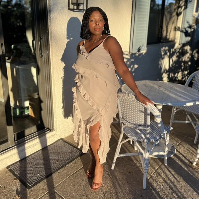 Women's Ruffle Maxi Slip Dress - A New Day™ Tan XXL