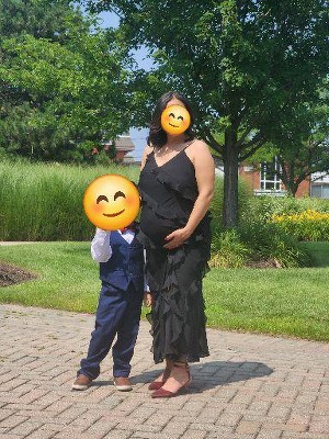 I wore this to a formal event while 8 months pregnant. Recieved lots of compliments that day. I would not consider it stretchy but it had enough space for my bump, and large chest - I got a size small (5ft, 34G). It was so comfortable, and I had to wear for almost 12 hours. It's not my normal style but so happy I ended up trying it, because every other dress I tried was not flattering or would have been a hassle using the restroom (IYKYK).