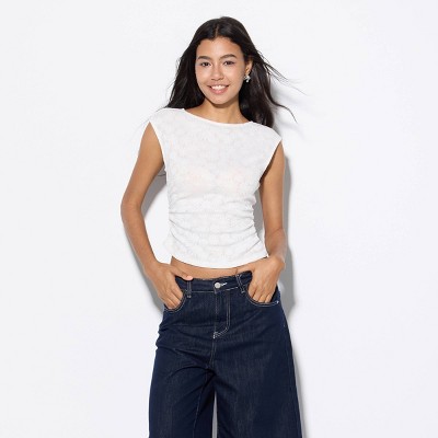 Step out in style wearing the Women's Ruffle One Shoulder Knit Top from Wild Fable™. Crafted from soft, lightweight jersey fabric, this casual-fit top features a statement ruffle sleeve and an elegant one-shoulder neckline that can be styled on or off the shoulder. The sleeveless pullover design and at-hip length make it perfect for pairing with high-rise jeans, skirts or shorts. Whether you're heading to brunch or a summer evening out, this top brings effortless style with a playful twist.