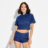 Women's Sailor Short Sleeve Button-Down Denim Shirt - Wild Fable™ Medium Wash XXS