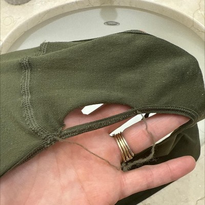 Pretty disappointed. Tore with only 7 hours of wear. Literally. Took off the tag this afternoon and by bedtime it was torn like this.