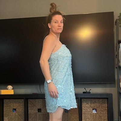 [This review was collected as part of a promotion.] I’ve been searching for a dress to wear in Vegas for a concert and this women’s sequin mini shift dress from A New Day is exactly what I was looking for. The light blue is beautiful and the sequins on the dress shine. The fit of the dress is great and true to size and I’m wearing my usual size large. My measurements are 33 inch waist and 41 inch hips.