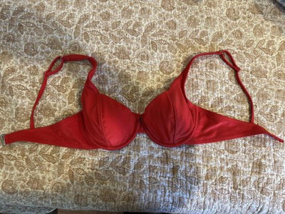 The Women's Shiny Ribbed Underwire Bikini Top by Wild Fable is a beautiful swimsuit top. I have a large chest DD and the size large in this top is small. I would suggest this top for a large C-D cup chest. Aside from that it is well made and a pretty shiny red color. I would recommend.