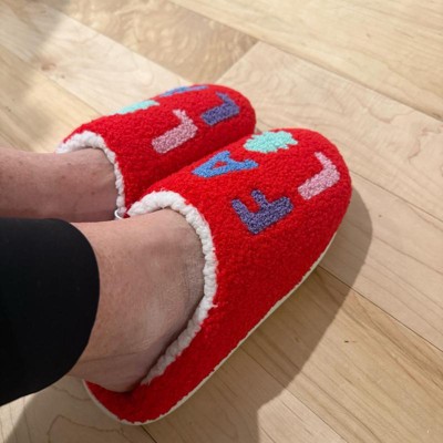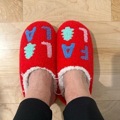 [This review was collected as part of a promotion.] Love these sturdy slippers from wild fable brand. I ordered the size small which fits a shoe size 5 and six and they fit great as I typically wear a size 6.5. Love that these have a thick bottom so you could wear them outside and they won’t get scuffed up. The colors on them were super pretty and I love the Fa La La La messaging. Perfect for the holiday season and will be a perfect gift to help spread the holiday spirit. This item Felt true to size and the width Felt true to width.