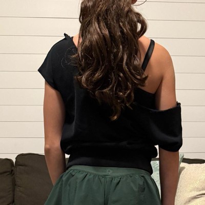 [This review was collected as part of a promotion.] I purchased this universal thread off the shoulder short sleeve tshirt for my daughter. My daughter is 4 feet 8 inches and approximately 80 pounds. She wears an adult size extra small in tops so I got her her typical size. The fit was great and it’s the perfect top for her to wear to dance class. She loves the off the shoulder style and the black goes with everything! I received an incentive to write this review.