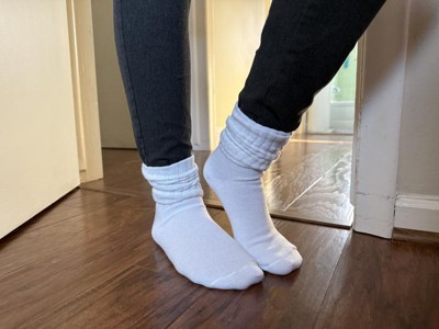 These socks are so cute!!! On trend, soft, and the perfect height. I love that they come slouched because it gives the perfect slouch for the look I want that is hard to achieve with other socks. They are a really soft material that feels so nice. They are a little thicker on the slouch area but more like a regular sock on the foot part. I love everything about these and they are my new favorite socks. I love the colors too! They elevate my daily legging look so much. In love!