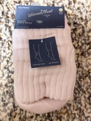 Upgrade your everyday essentials with the Women's Short Slouch 3pk Ankle Socks from Universal Thread™ 4-10. Made from a soft cotton-blend knit, these lightweight ankle socks feature a relaxed, slouchy design for effortless comfort and style. The seamless toe construction ensures a smooth, irritation-free feel, making them great for all-day wear. With three pairs in each pack, you’ll always have a comfy and stylish option ready to go.
