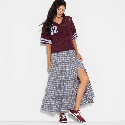 Get a new look with the Women's Side Slit Maxi Pencil Skirt from Wild Fable™ in brown. Made from a midweight knit blend, it feels soft and holds its shape well throughout the day. The high-rise design and regular fit keep things simple and easy to style, while the side openings add a relaxed touch to the clean silhouette.