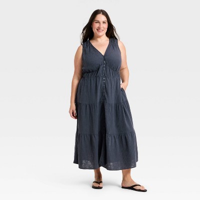 Women's Sleeveless Ruffle Maxi Sundress - Universal Thread™ Navy Blue XXL