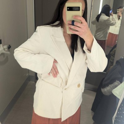 Love this blazer! I wore it for Resurrection Sunday paired with the jumpsuit in the same color. Even though the description says slim fit, I sized down. It’s obviously oversized - which is fine. The pockets seem like faux pockets at first but they’re easy to open up. 10/10! Would love it in black!