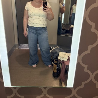 I lost over 20lbs in the last several month so I’m to change up my style a bit to a little more “girly” and this top immediately went in to my cart! I’d say it fits tts and hits right at the waist of my jeans. I work in childcare so I did the stretch test and I wasn’t able to see any stomach so while short it’s not a crop top (although I’m 5’2”)