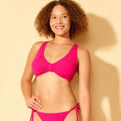 Tricot bralette bikini top from Wild Fable™ with smocking. Made from nylon fabric with spandex for flexible comfort in and out of the water. Comes with adjustable shoulder straps and an adjustable back strap with a hook-and-loop closure for a customizable, stay-put fit. D/DD feature a fully adjustable tie-back closure. Sizes X-3X feature a double swan hook back closure.