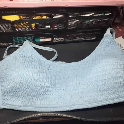 This women's smocked Bralette Bikini Top wild fable light blue is great quality, durable and the design is ok. It fits and very comfortable. Itis easy to hook in the back with hooping that in. It is very supportive and true to size. I just don't like the color as usual. I will probably get another extra color next time and I would recommend. #