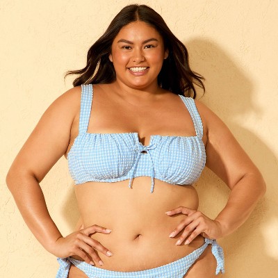 Tricot underwire bikini top from Wild Fable™ with smocked texture. Features adjustable shoulder straps for a personalized fit. Made from nylon fabric with spandex for flexible comfort in and out of the water. Adjustable back strap with a hook-and-loop closure completes the look and provides a stay-put fit. D/DD features an extra adjuster at back closure (swan hook.) Sizes 14-24 feature a double swan hook back closure.