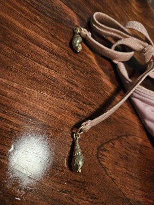 This Women's Lurex Shell Charm High Leg Cheeky Bikini bottom is a Beautiful color and has an amazing texture to it that just makes it sparkle gloriously in the light!! The shell charms are really pretty and are lightweight. The tie strings can be tied in multiple ways to suit your mood. I am really excited to show off my great swimwear this summer.