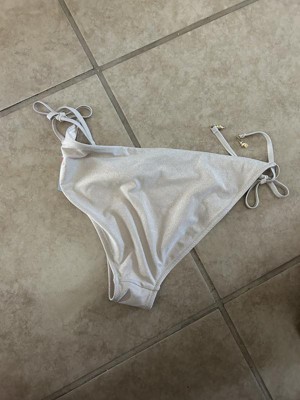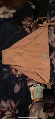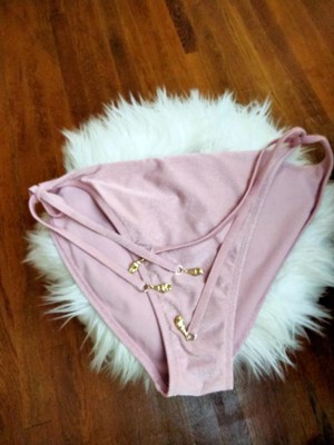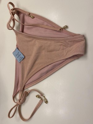 Women's Lurex Shell Charm High Leg Cheeky Bikini Bottom. Lovely pearl like pink color with side ties. Fits true to size. Comfortable and perfect for pool side or the beach. Can be paired with another pastel accessory or bikini top.
