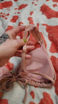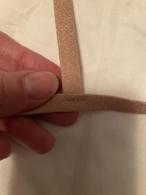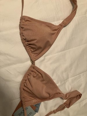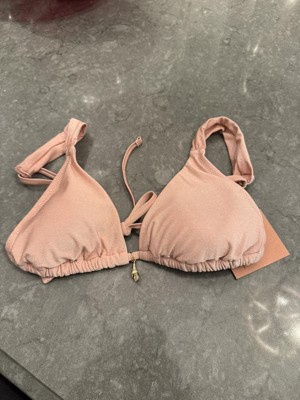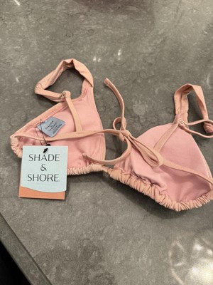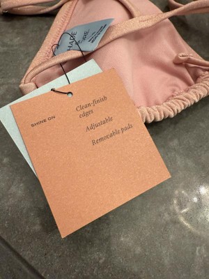 Add a stylish shimmer to your vacay wardrobe with this Lurex Shell Charm Triangle Bikini Top from Shade & Shore™. The pale pink swim top is made from soft, stretchy fabric with full lining for comfortable wear in and out of the water, along with metallic fibers for a sparkling touch to your beachwear. It features a triangle-cup silhouette accented with a gold-tone shell charm dangling at the center front. Plus, it comes complete with adjustable shoulder straps and a back-tie strap for a customizable, stay-put fit.