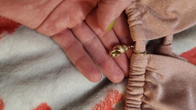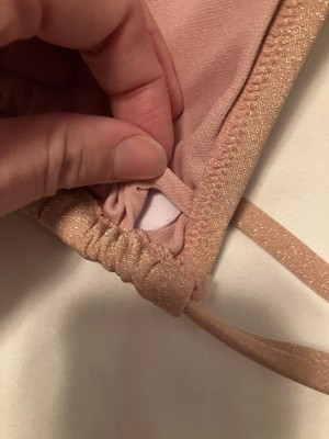 This top is so uncomfortable. The sparkle textured fabric is cute but the straps have that fabric all the way around and it was instantly scratchy and uncomfortable. It is very minimally adjustable and I really was bothered by the charm in the front. It’s also an unfortunate color for light skinned people. The hole to access the pads is even smaller than the standard ones I’ve seen, so once those pads wrinkle up inside the cups it would be impossible to fix them.