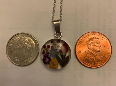 Women's Sterling Silver Pressed Flowers Circle Chain Pendant Necklace (18")