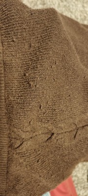 So stinkin cute but snags easily! I wore my solitaire engagement ring and it caught on these pants. I got a big hole and had to sew a patch underneath. Really cute matching set and the cable stitch detailing is a nice touch but not so high quality.