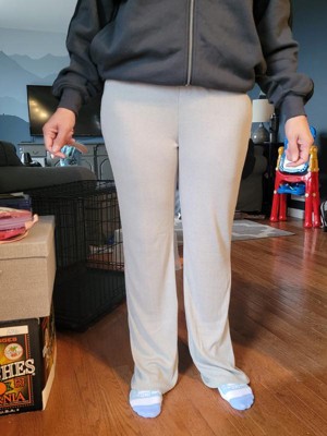 These are really great for lounging around the house or as pajamas. They’re slightly see through so not something I’d wear with people over. The fabric is extremely soft and has a really cute texture. They’re also really stretchy which adds to the comfort. I’m not used to high waisted pajamas but they sit in a nice spot and are actually really comfortable. They’re long on me, I’m 5’5” so perfect if you’re on the taller side! The grey color is perfect for matching with most tops.
