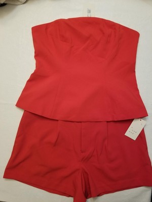 I'm a s/m 6/8 36C athletic build, and purchased a medium. However, the bust measurement in all three colors is 34"; your size chart reads that 34" is an extra small (xs), so why then is it being sold as a medium? Do better Target! This is the 4th set of tops I've had to return because there is no quality control (at least on the medium sizing). fyi: The top and shorts aren't an exact match in red, but are extremely close. If you can find your size, get it because with the tailored shorts and cropped zip front jacket (in black) it makes a chic outfit.