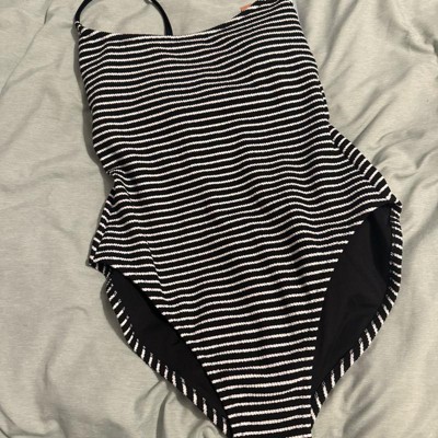 [This review was collected as part of a promotion.] You are completely obsessed with a size small scoop neck swimsuit. The black-and-white stripes were really flattering and we really appreciated how you can adjust the straps in the back to make sure that the swimsuit fixed correctly overall, we found the suit it’s very true size. The torso is really long and uncomfortable and we appreciated how it was more of a full coverage style. I typically wear a size small and I’m in a cup and found this to be a perfect fit.