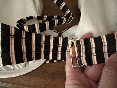 I purchased this top to go with a pair of black bottoms that I bought last year at target and they look really cute together. I love the striped design. I also like that it has a underwire since I don't have big breasts. I would say it's true to size I would definitely buy it in other colors if they had them. I also got it on sale. I think it was a target circle at 30% off I think which made it a great value.
